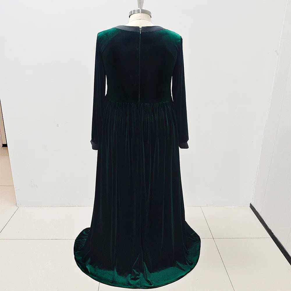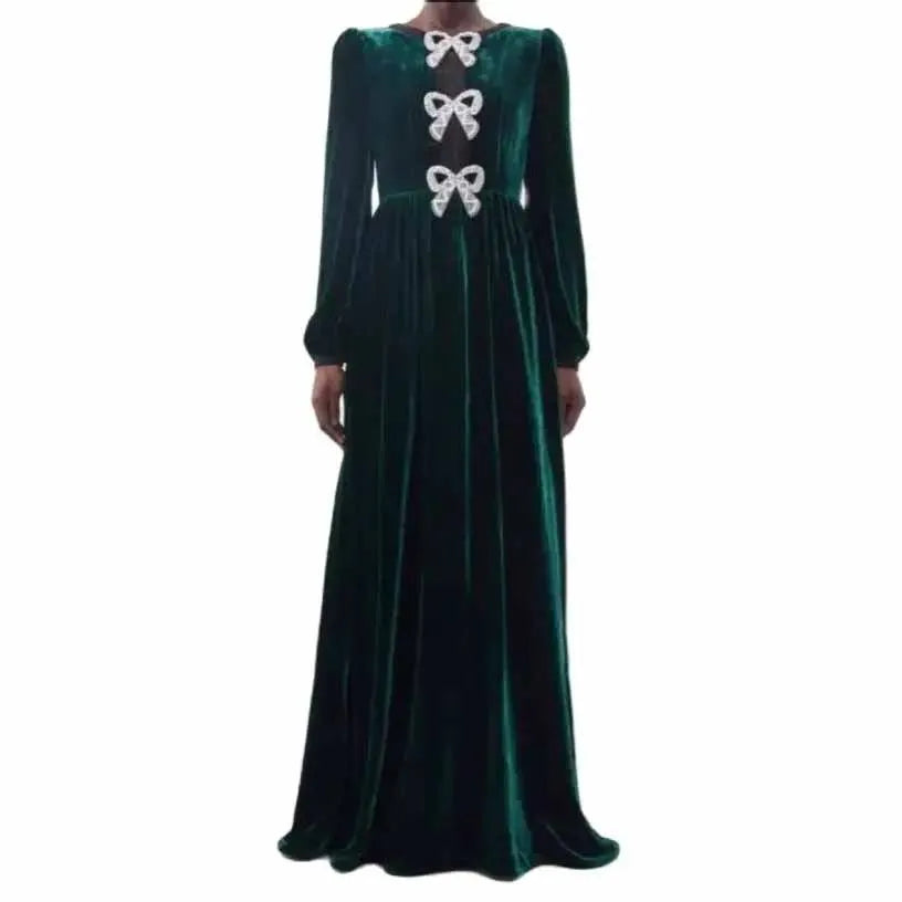 Luxury Long Sleeve Floor Length Bow O-Neck Straight Dress