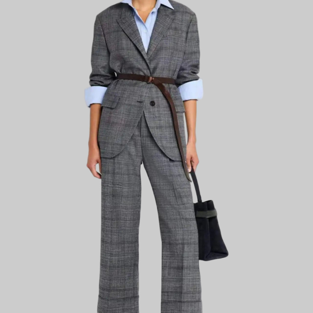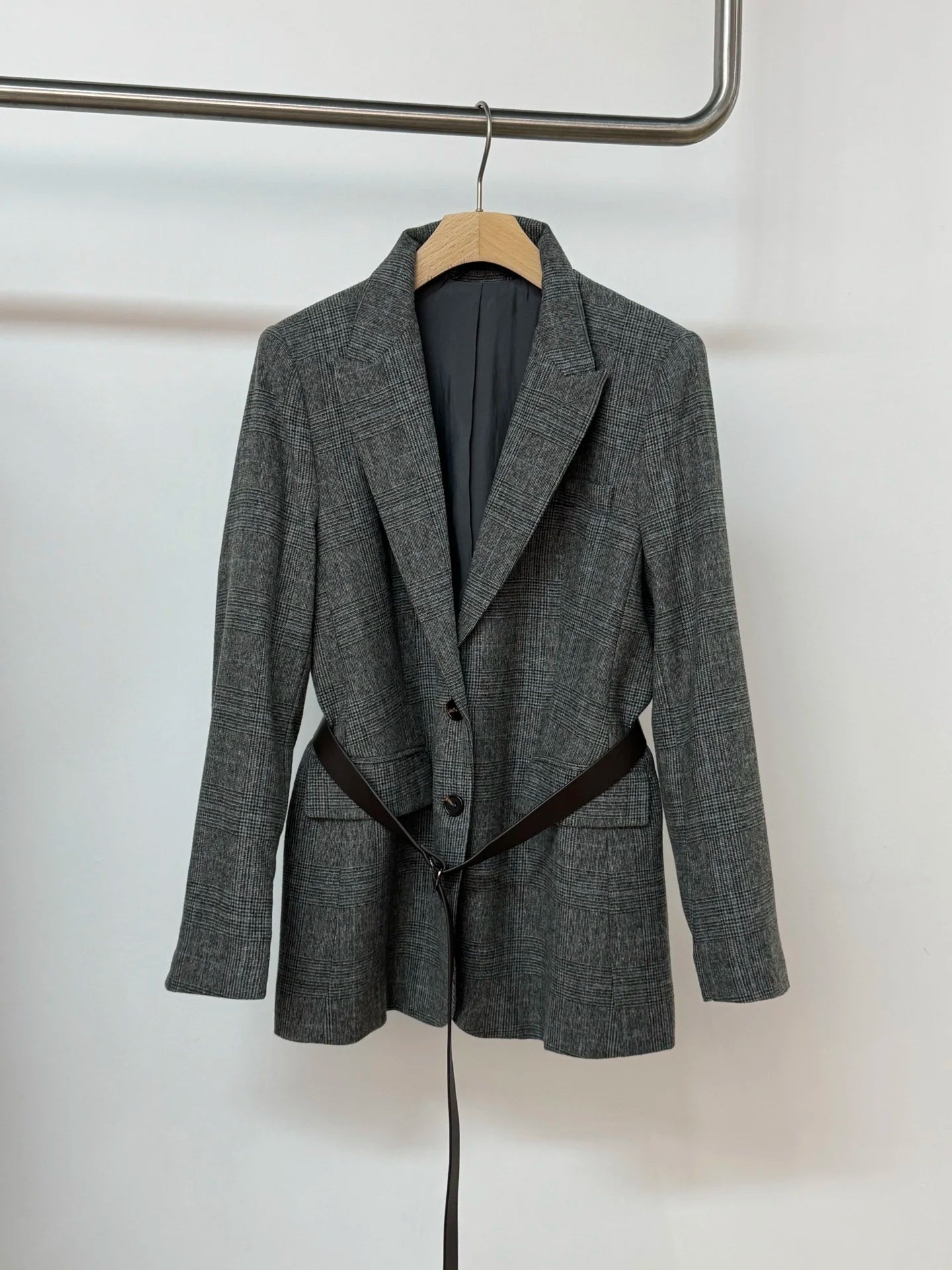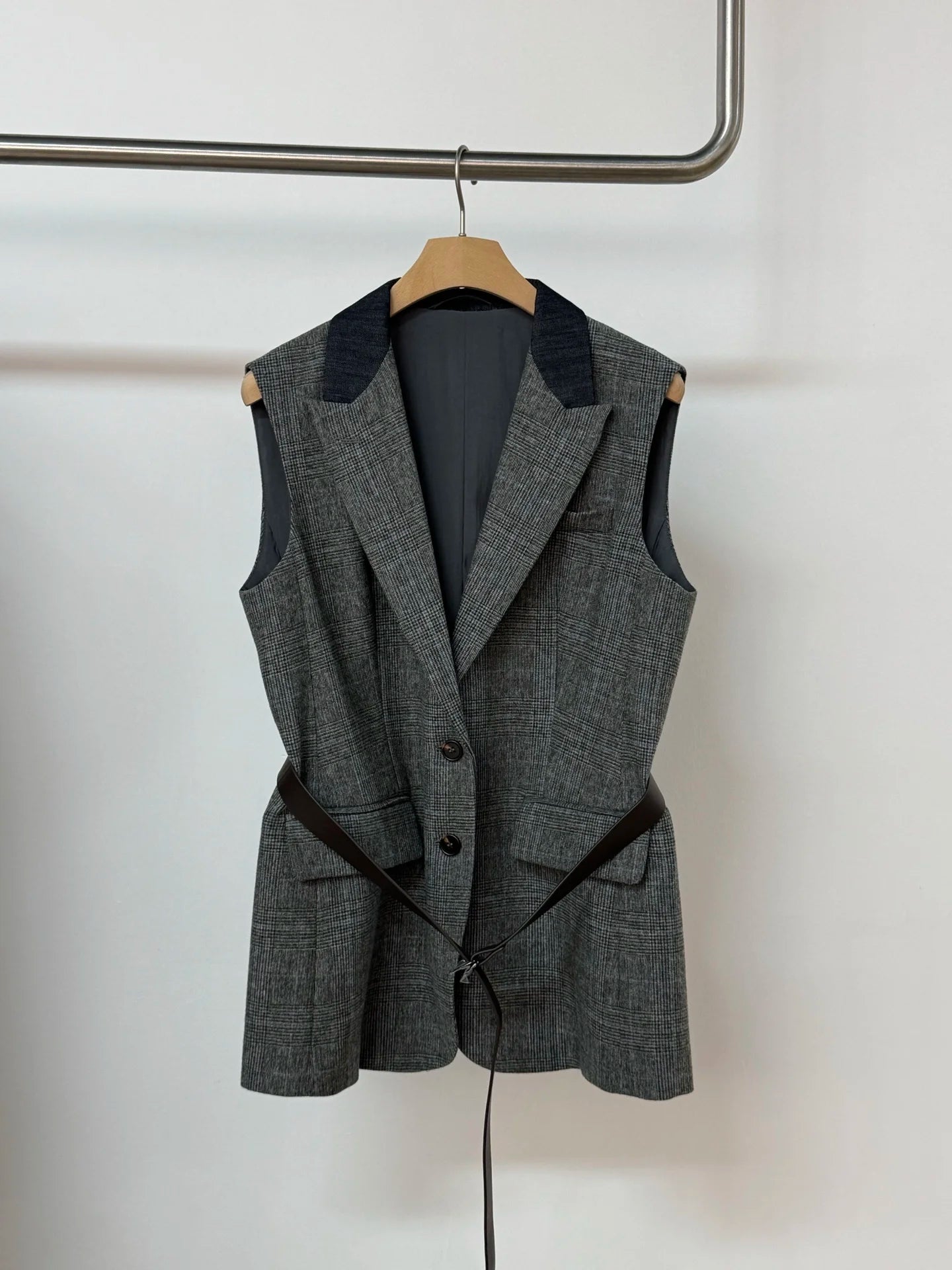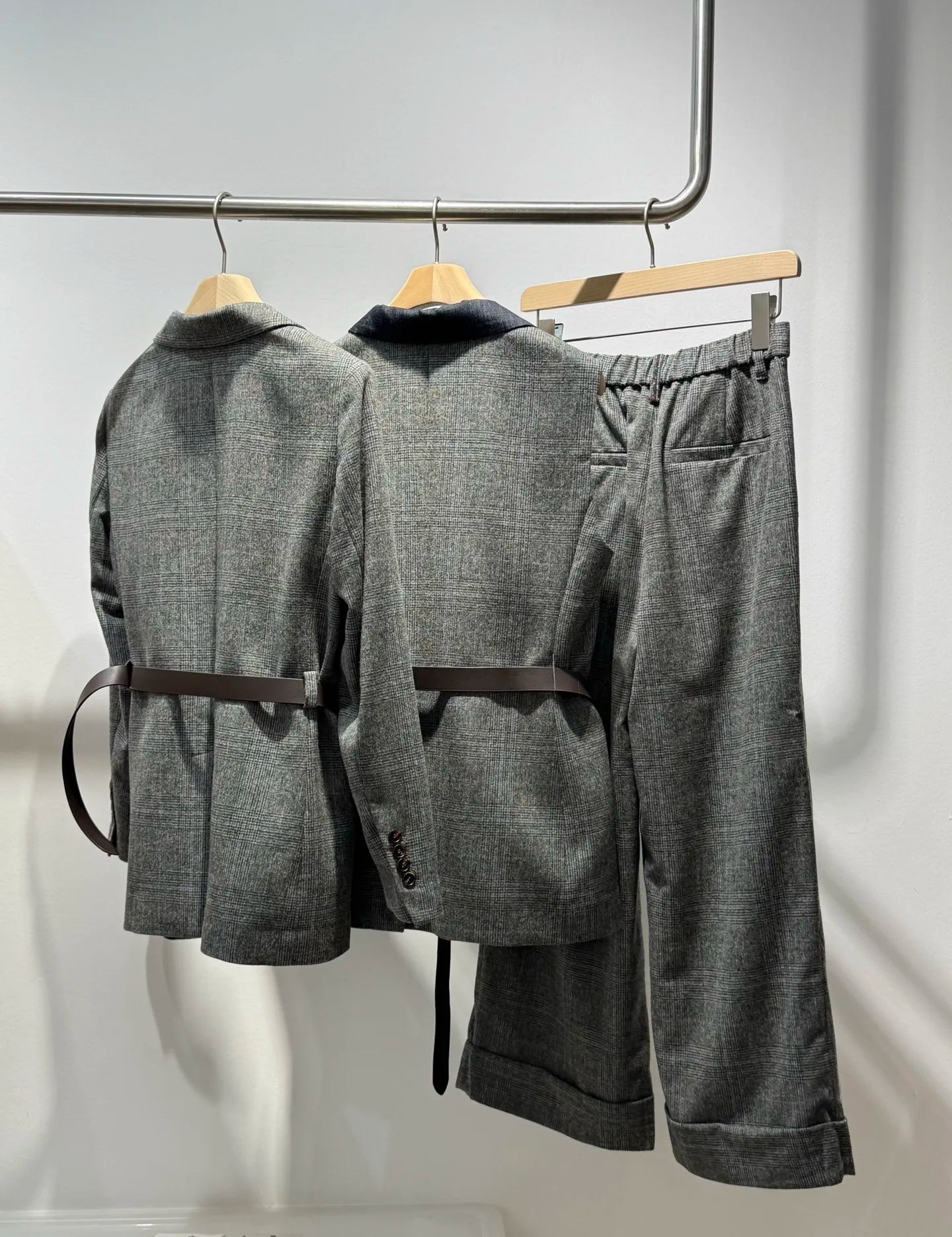 Casual Wool Plaid WaistedStyle Suit + Vest + Trousers Set