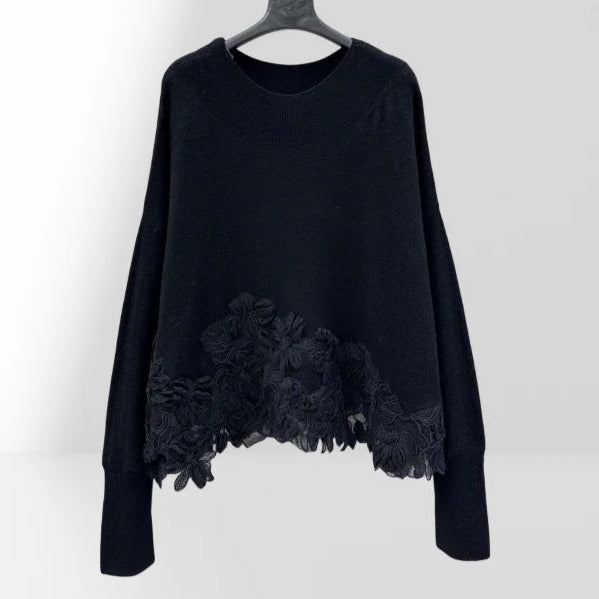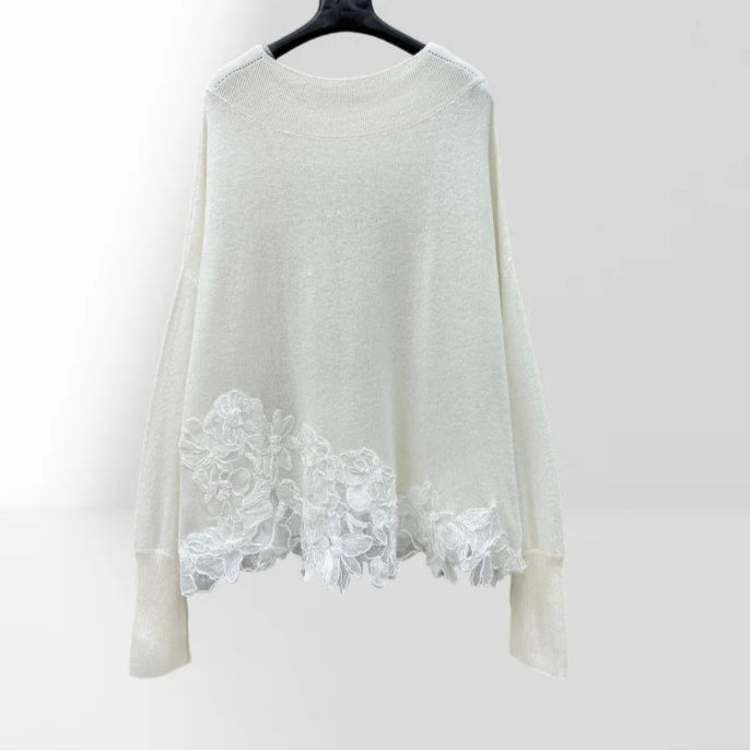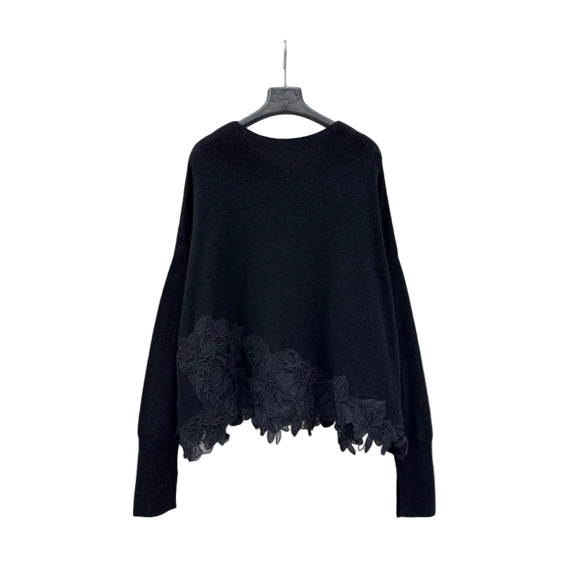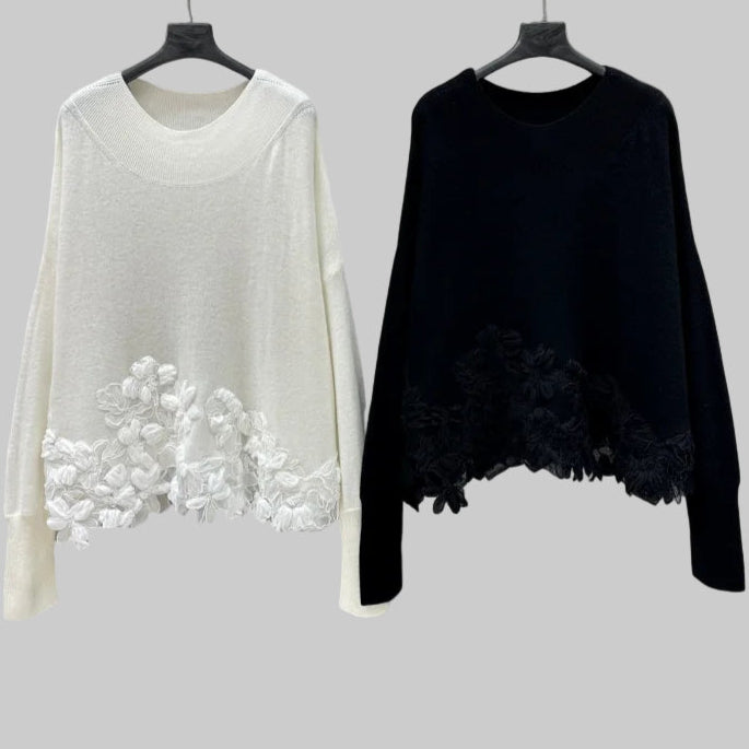 Three-Dimensional Silk Flower Handmade Lace Applique Cashmere Top
