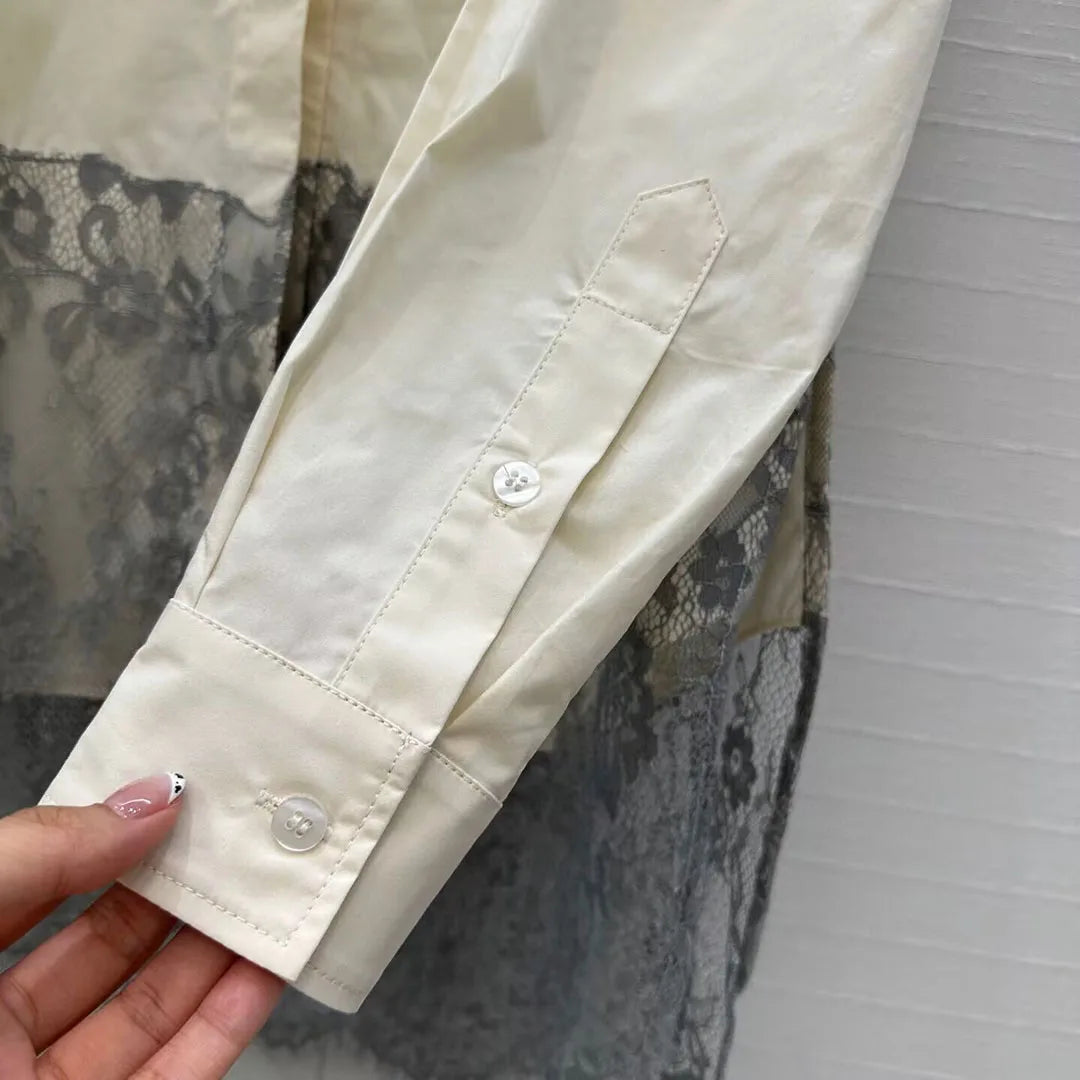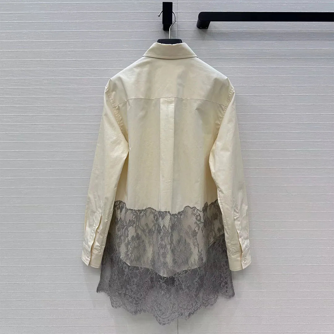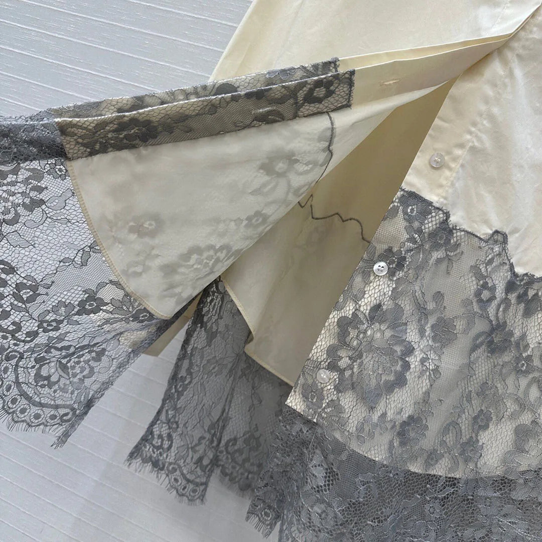Loose Sweet Long Shirt Women Lapel Long Sleeve Lace Patchwork Top