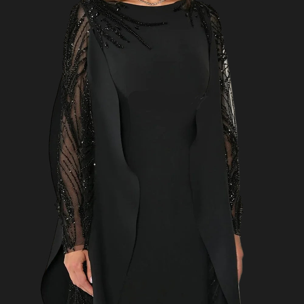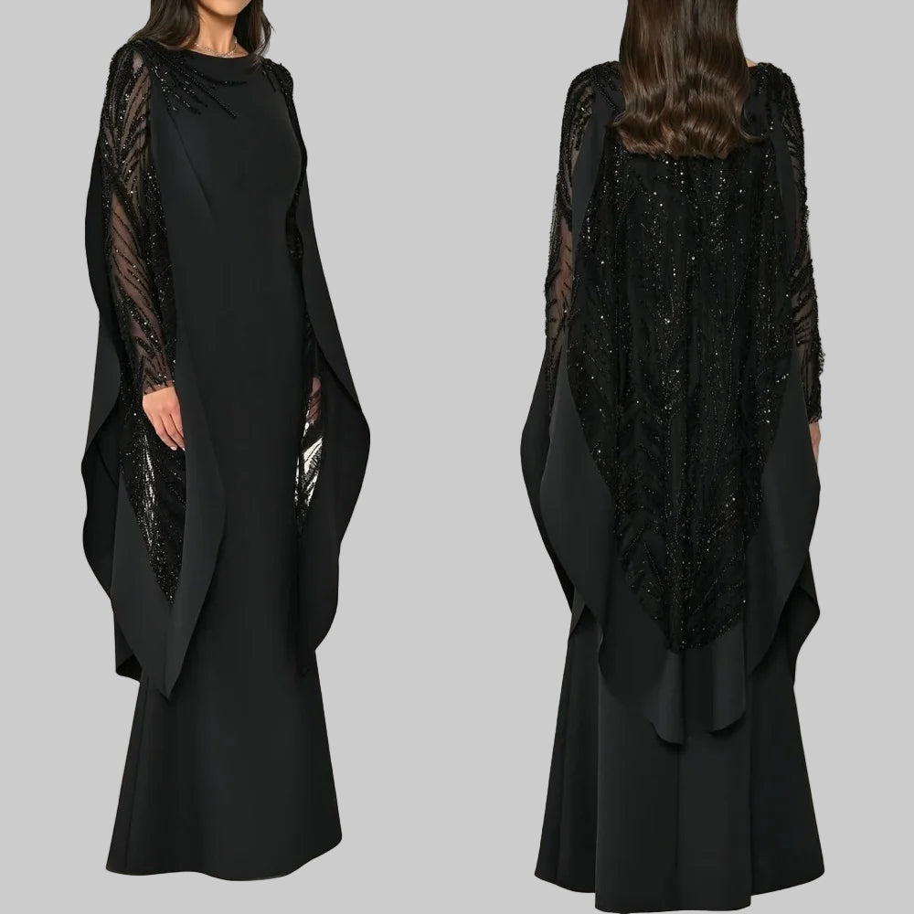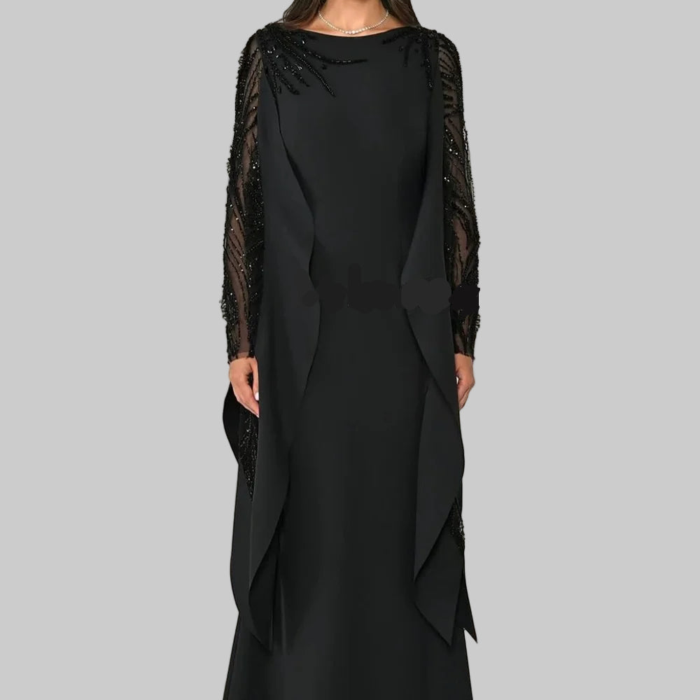 Jersey Rhinestone Beading Sequined Draped Straight O-Neck Long Dress