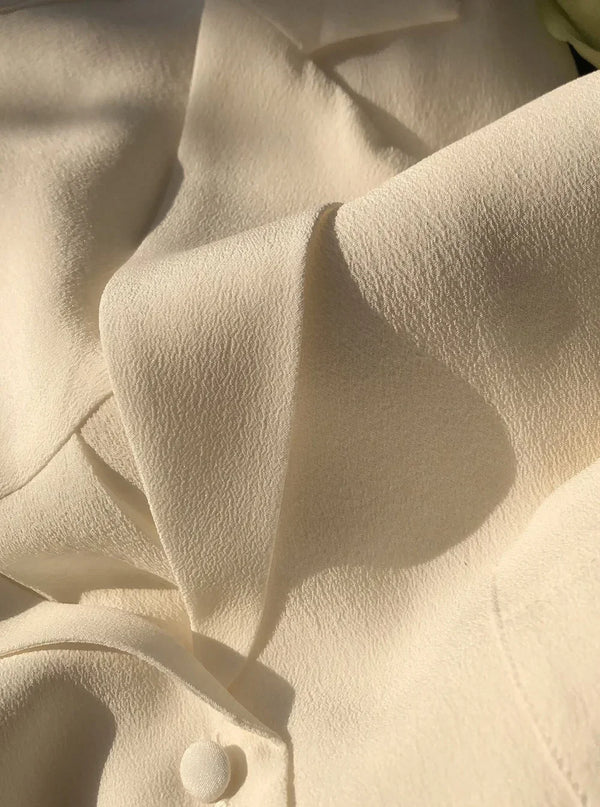 SPECIFICATIONS Closure Type: Single Breasted Clothing Length: Regular Collar: Turn-Down Collar Fabric Type: Silk Material: Silk Sleeve Length(cm): Full