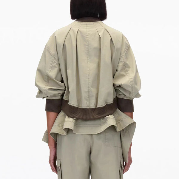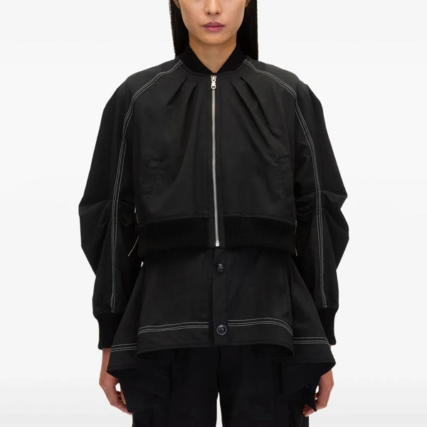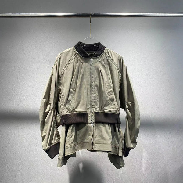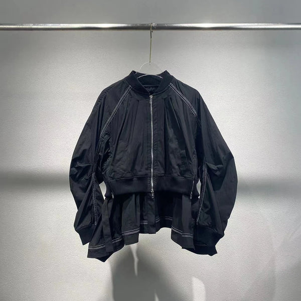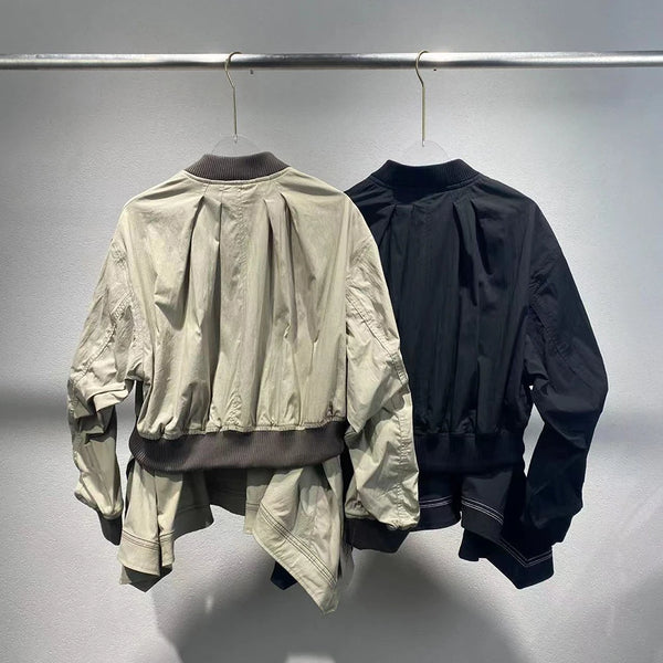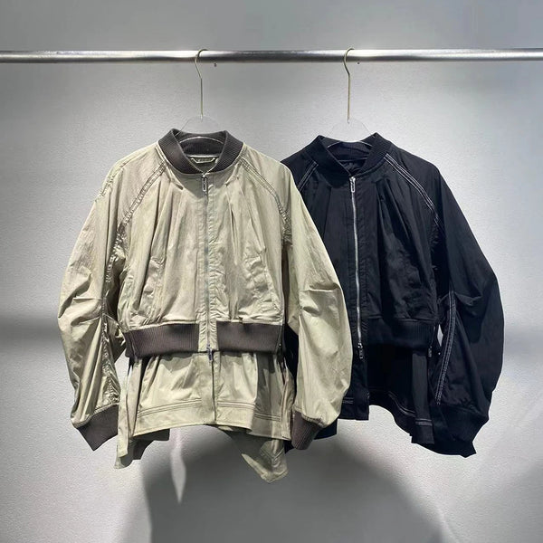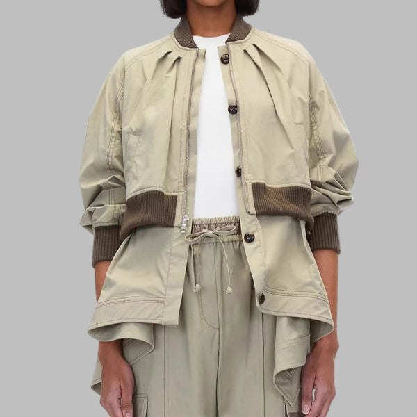 Round Collar Zipper Splicing Elegant Loose Long Sleeve Coat Top