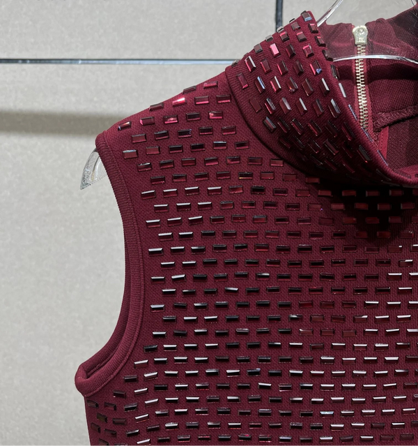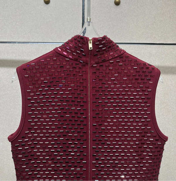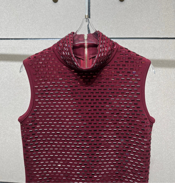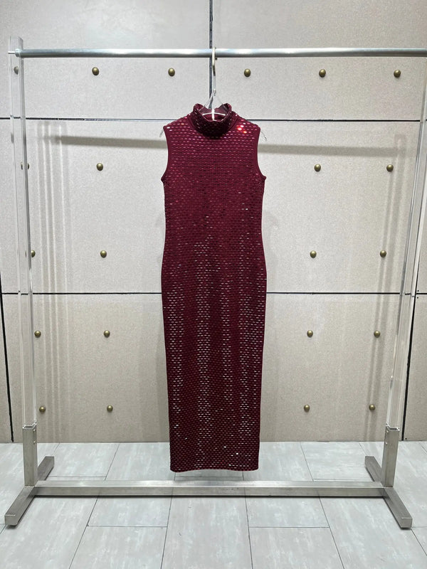 SPECIFICATIONS Elasticity: High Stretch Sleeve Style: TANK Fabric Type: Knitting Pattern Type: Solid Fit Type: Slim Silhouette: A-LINE Neckline: Stand Decoration: Diamonds Dresses Length: Ankle-Length Material: COTTON Craft of Weaving: Knit Closure Type: zipper Material Composition: Natural Fiber Waistline: Empire...