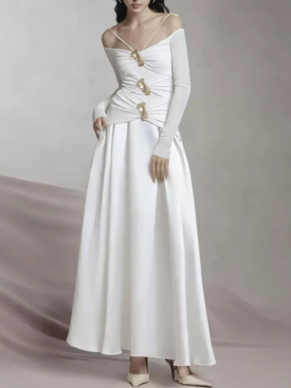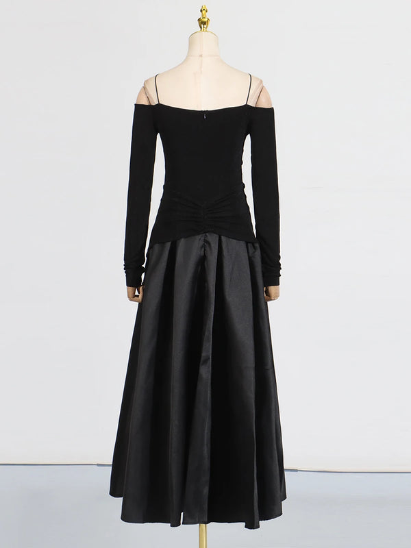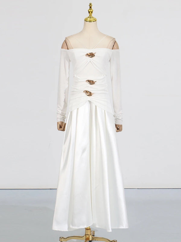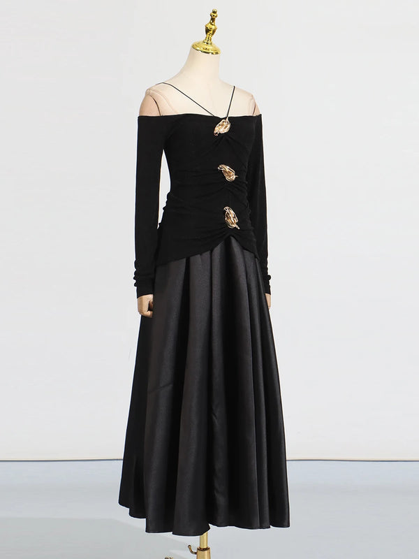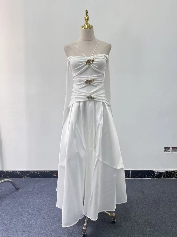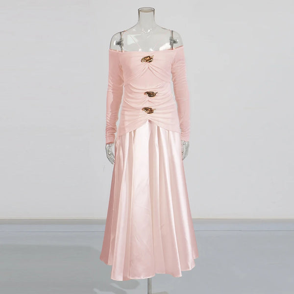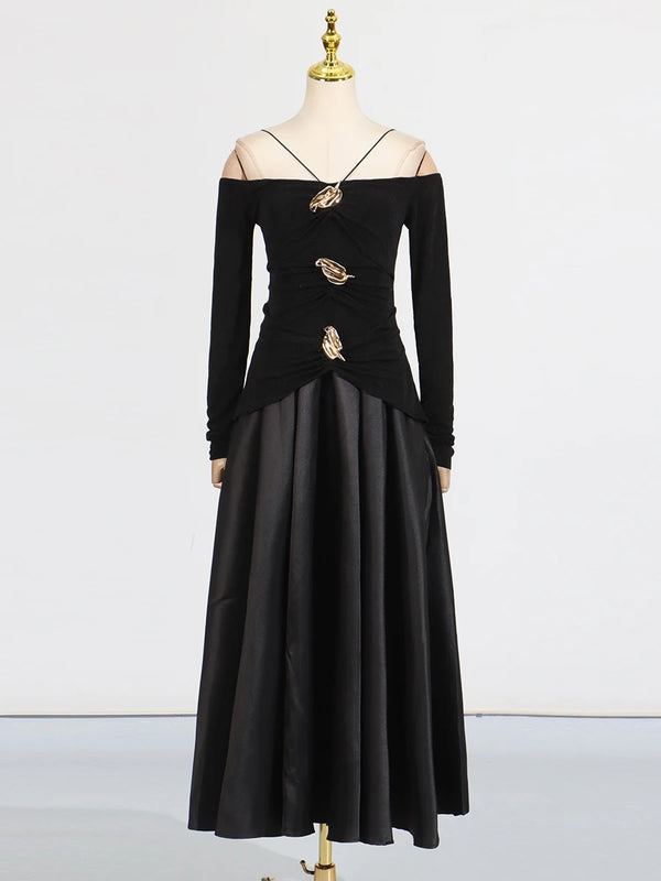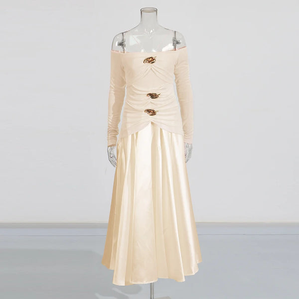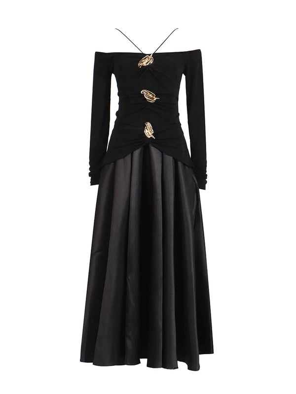 Elegant Patchwork Metal Strapless Off Shoulder Sleeve High Waist Dress
