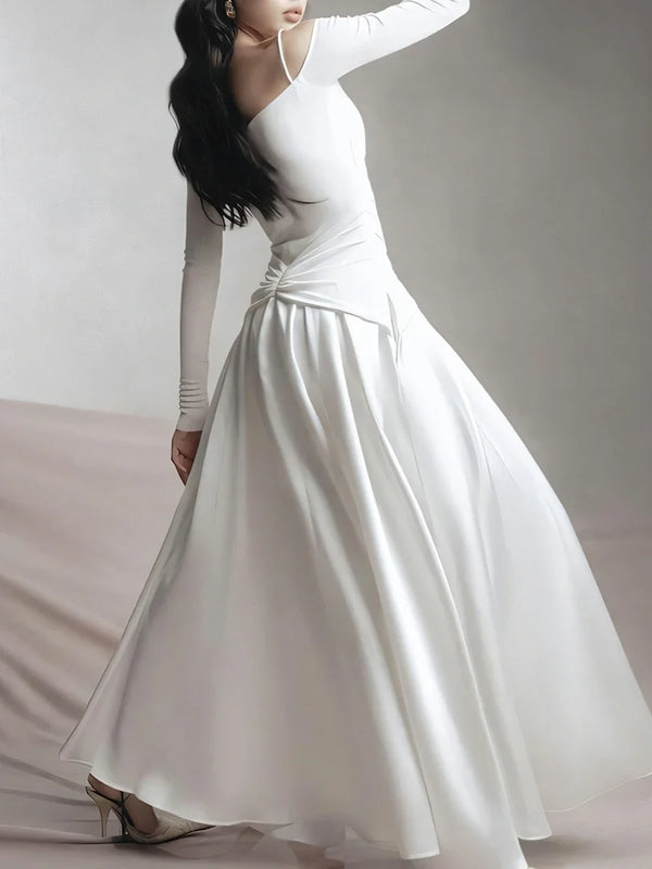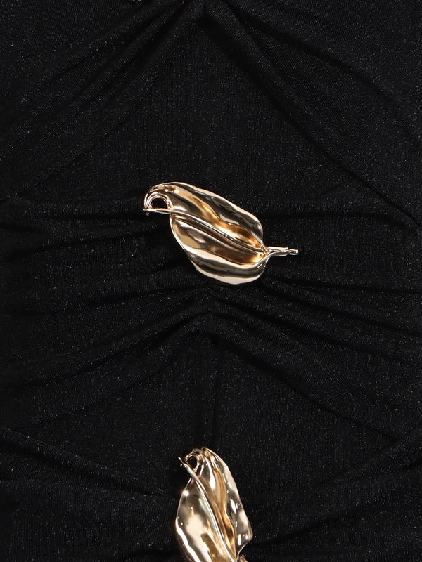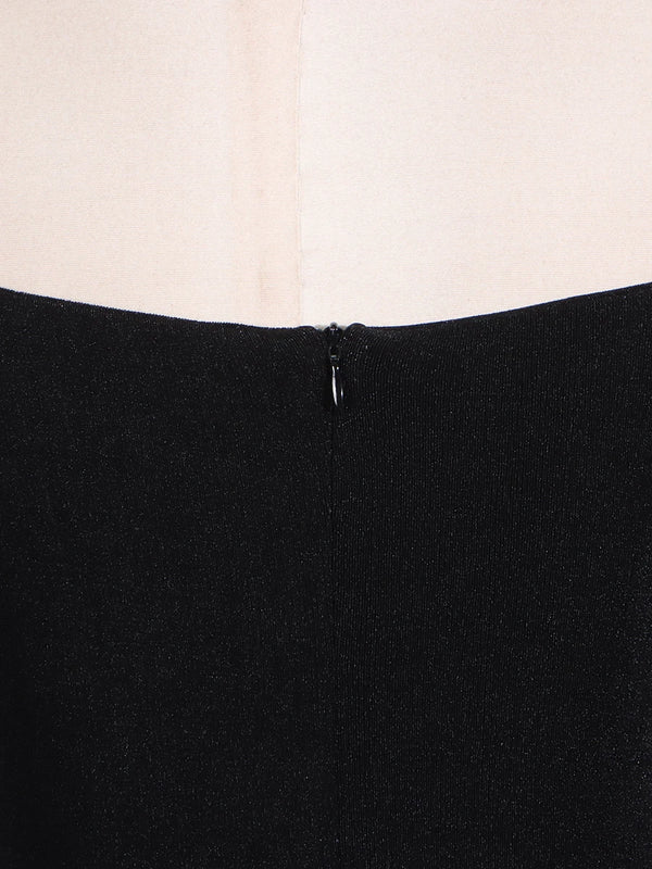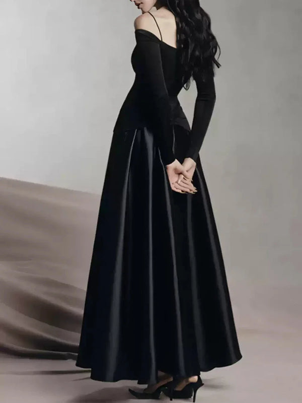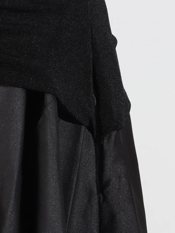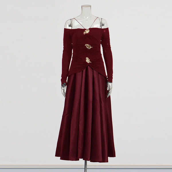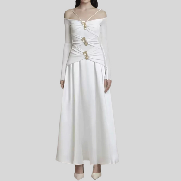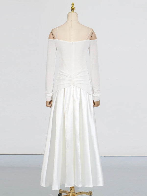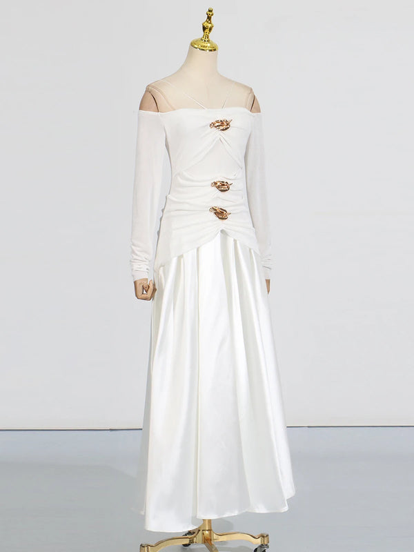 Elegant Patchwork Metal Strapless Off Shoulder Sleeve High Waist Dress