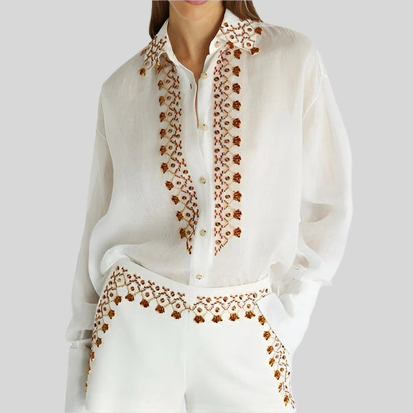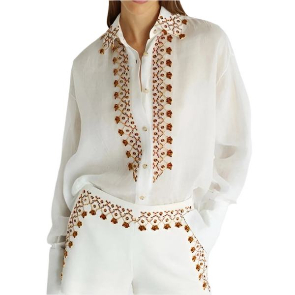 Embroidery Mid-Length Solid Color Loose Shirt Casual Shorts