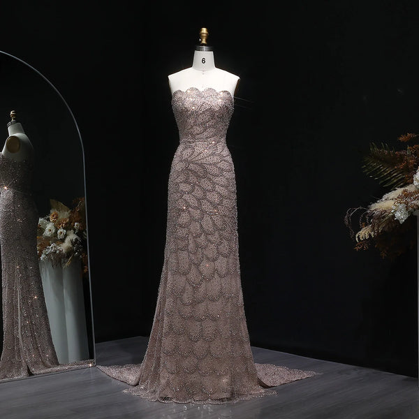 SPECIFICATIONS Actual Images: Yes Built-in Bra: Yes Craft of Weaving: Non-Woven Decoration: Beading, Flowers, Sequined Dresses Length: Floor-Length Fabric Type: Tulle Fashion Element: beads Neckline: Strapless Occasion: Formal Evening Silhouette: Trumpet / Mermaid Sleeve Length(cm): Sleeveless Train: Sweep Train...