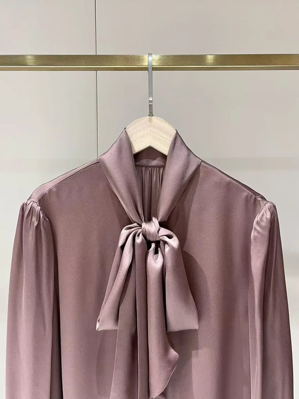 SPECIFICATIONS Closure Type: Single Breasted Clothing Length: Regular Clothing Patterns: Loose Collar: Bow Decoration: Bow Fabric Type: Silk  Material: Silk Sleeve Length(cm): Full Sleeve Style: Regular