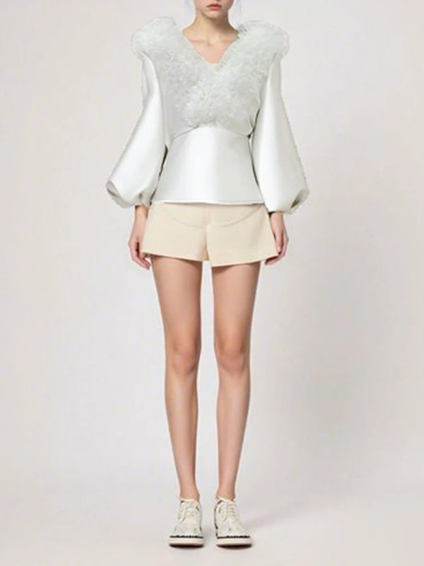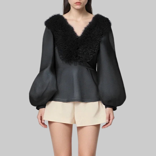Spliced Fungus Folds V Neck Long Sleeves Tunic top