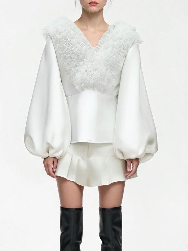 SPECIFICATIONS   Closure Type: Zipper Clothing Length: regular Collar: V-Neck Decoration: Rushed Sleeve Length(cm): Full Sleeve Style: Puff Sleeve Style: Vintage