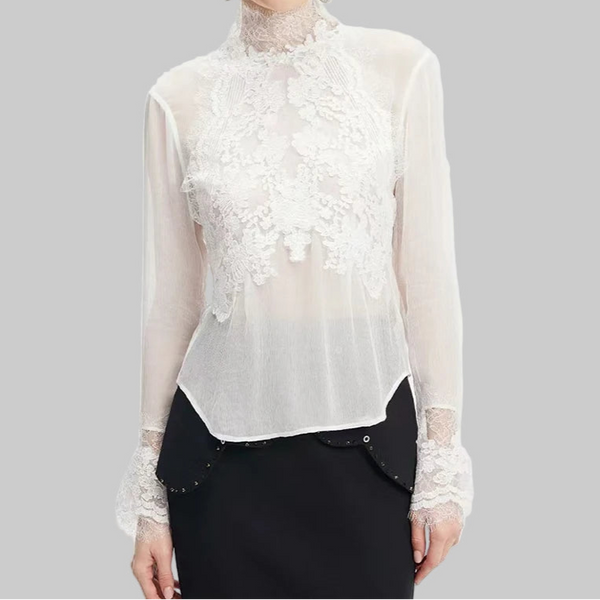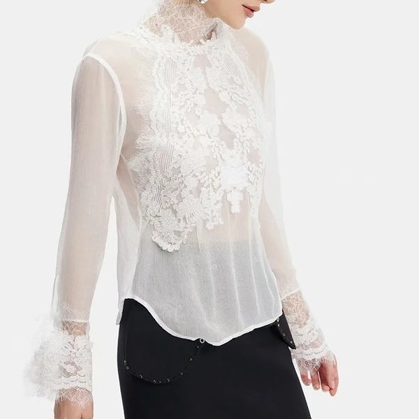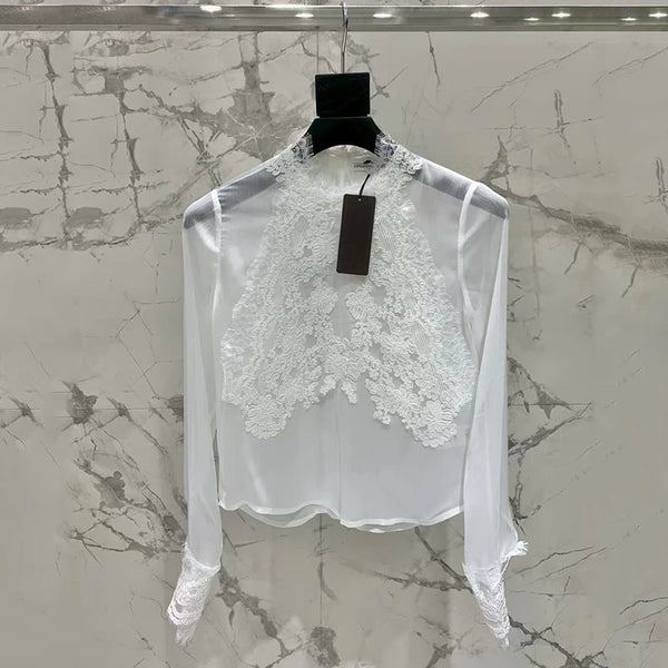 SPECIFICATIONS Clothing Length: regular Collar: O-Neck Decoration: Lace Fit Type: Regular Fit Material: Lace, Silk Shirts Type: Casual Shirts Sleeve Length(cm): Full